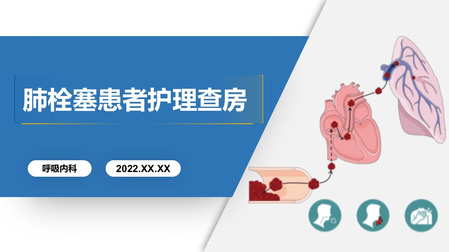 肺栓塞定义肺栓塞(Pulmonaryembolism,PE):内源性或外源性的栓子堵塞肺动脉主干或分支引起肺循环障碍的临床和病理生理综合征,肺栓塞引出的肺组织发生坏死的病理改变,称为肺梗死。发病率高,在心血管疾病中仅次于冠心病和高血压易漏诊及误诊,国内漏诊率达80%以上不经治疗死亡率高,可高达20%--30%仅次于肿瘤及心肌梗死诊断明确并经过积极治疗者,死亡率可明显下降,可下降至2%--8%肺栓塞的分类血栓栓塞症(最为常见)栓子的来源深静脉血栓脂肪栓附壁血栓羊水栓其他如空气栓骨折(髋部或大腿)大型普外科手术/大的创伤髋或膝关节置换/脊髓损伤关节镜膝部手术/中心静脉置管化疗/慢性心衰或呼吸衰竭/...