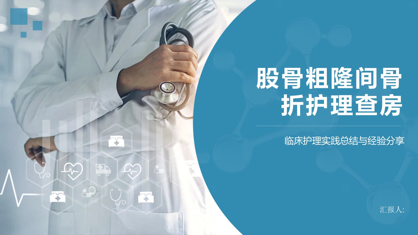 股骨粗隆间骨折护理查房临床护理实践总结与经验分享汇报人:目录疾病介绍01病史简介02护理评估03护理问题04护理措施05讨论与总结0601疾病介绍骨折定义与解剖位置010302骨折定义骨折是指骨结构的连续性中断,通常由外力或疾病导致。股骨粗隆间骨折是髋部常见骨折类型,位于股骨近端大转子与小转子之间。解剖位置股骨粗隆间位于股骨近端,包含大转子和小转子。该区域是髋关节的重要支撑点,骨折后易影响下肢功能。临床意义股骨粗隆间骨折多见于老年人,常因骨质疏松或跌倒引起,需及时治疗以避免严重并发症。常见病因0103跌倒导致骨折跌倒是最常见的股骨粗隆间骨折病因,尤其多见于老年人。骨质疏松使骨骼脆弱,轻微外力即...