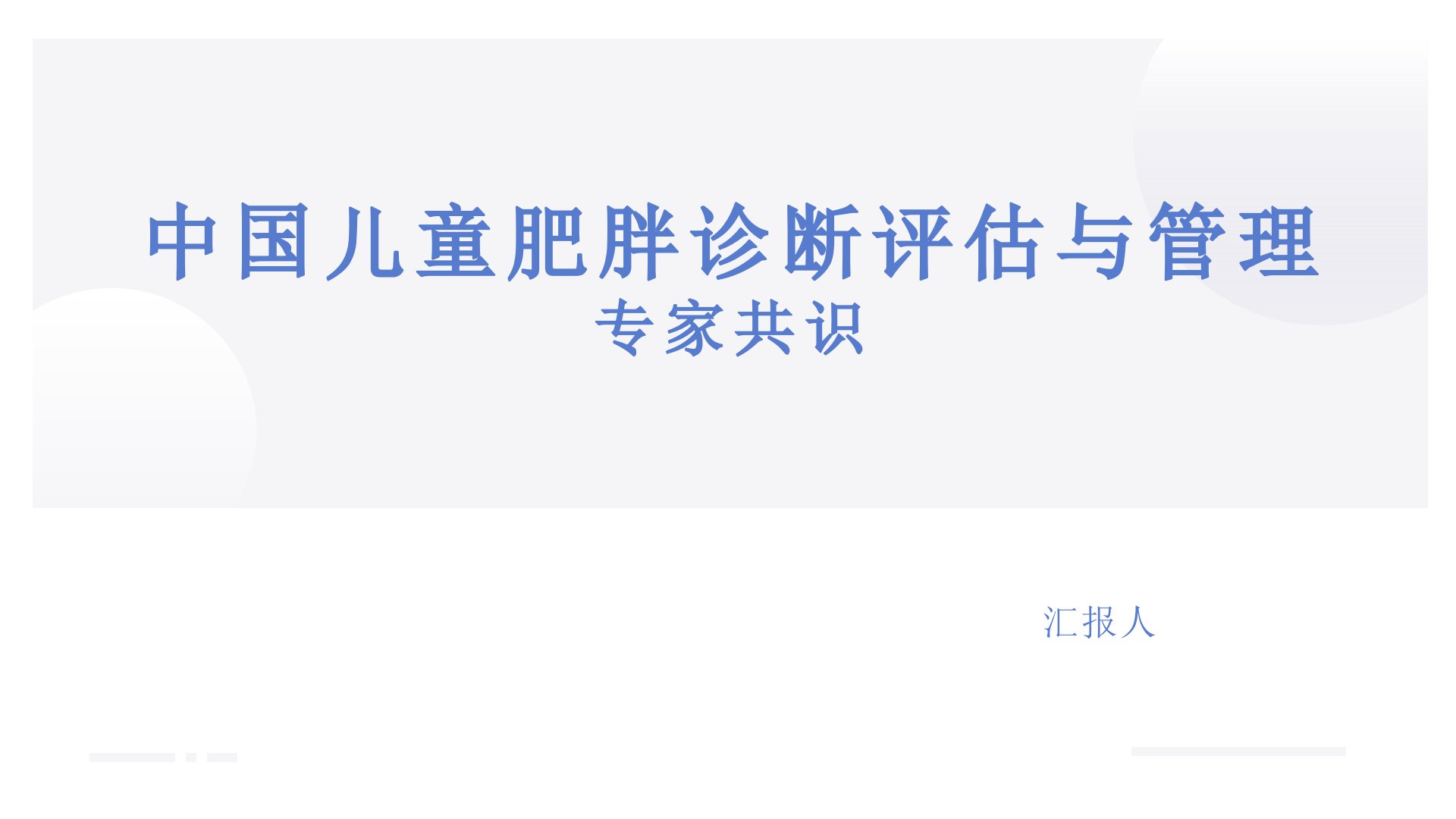 中国儿童肥胖诊断评估与管理专家共识汇报人CONTENTS01.诊断02.评估03.治疗04.预防和管控05.小结目录摘要近年来,我国儿童超重和肥胖的患病率总体呈上升趋势,其与多种并发症相关,严重威胁国民健康,增加社会成本,已成为我国重要的公共问题之一,因此儿童超重和肥胖问题需要家长、医生甚至全社会的重视。本专家共识着重强调肥胖以及肥胖相关疾病的一体化管理,进一步规范儿童超重和肥胖及相关并发症的诊断、评估、治疗以及预防与管控,用于指导基层医护人员日常工作实际应用。01诊断一、肥胖的定义与分型肥胖指由多因素引起的能量摄入超过消耗,导致体内脂肪积聚过多、体重超过参考值范围的营养障碍性疾病。根据脂肪组...