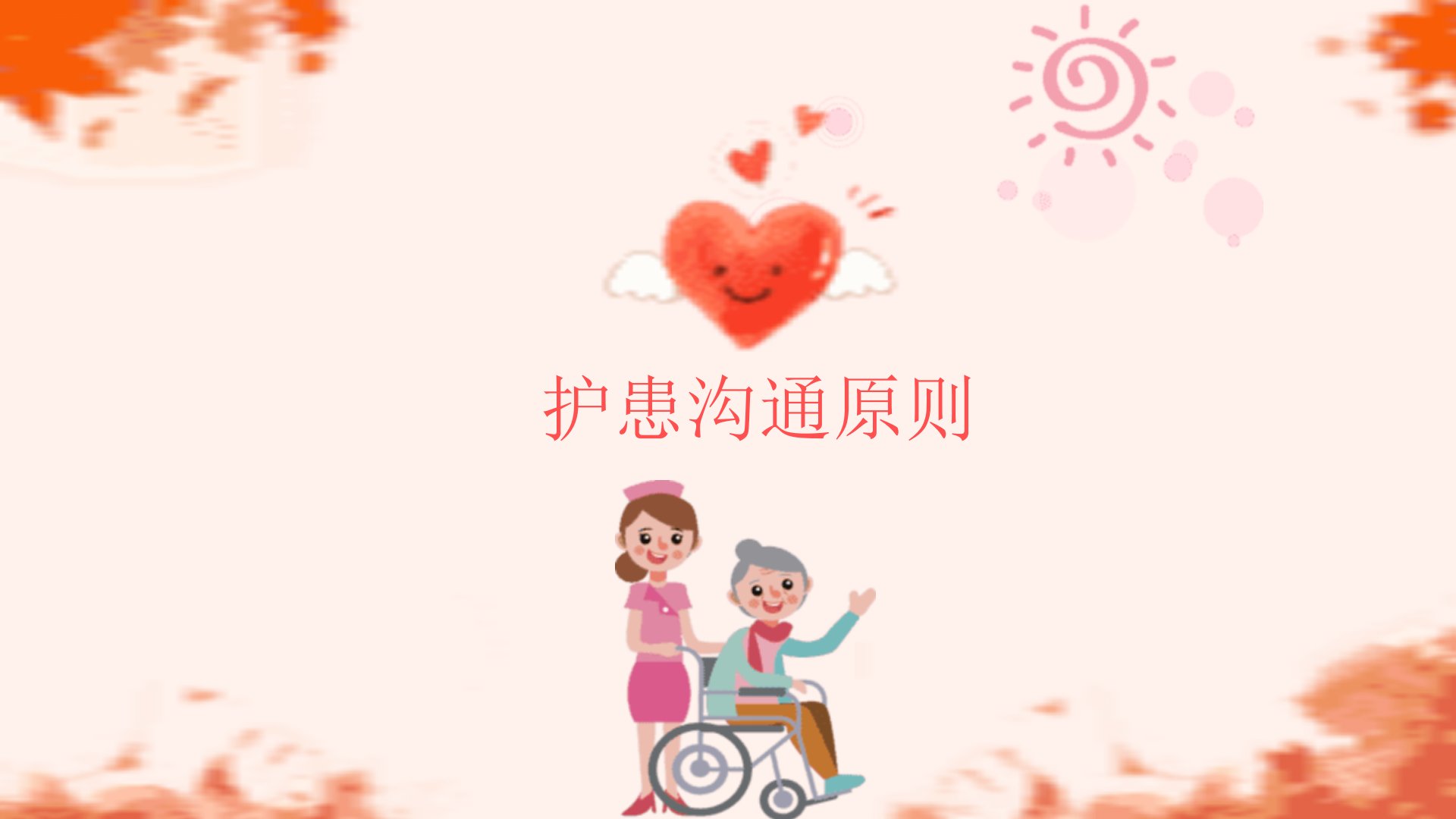 护患沟通技巧目录护患沟通原则护患沟通原则010203这是我国“救死扶伤,防病治病,实行人道主义,全心全意为人民服务”的护理道德基本原则的体现。平等原则040506始终原则诚信原则保密原则“以病人为中心”的原则同情原则护士要以真诚的同情心对待患者,这也是患者是否愿意和护士进行沟通的关键。诚信是护患沟通的基础和根本,只有讲诚信,才能建立良好的护患关系。护士在询问病史及操作过程中如涉及患者隐私时要保密,绝不能将患者的隐私和秘密随意泄漏。护患双方是平等的,护士要充分尊重患者享受健康权益的平等性,应一视同仁,平等公正待人。护患沟通要贯穿在整个医疗活动中,护士应把与患者的沟通能力作为应具备的基本素质。护患...