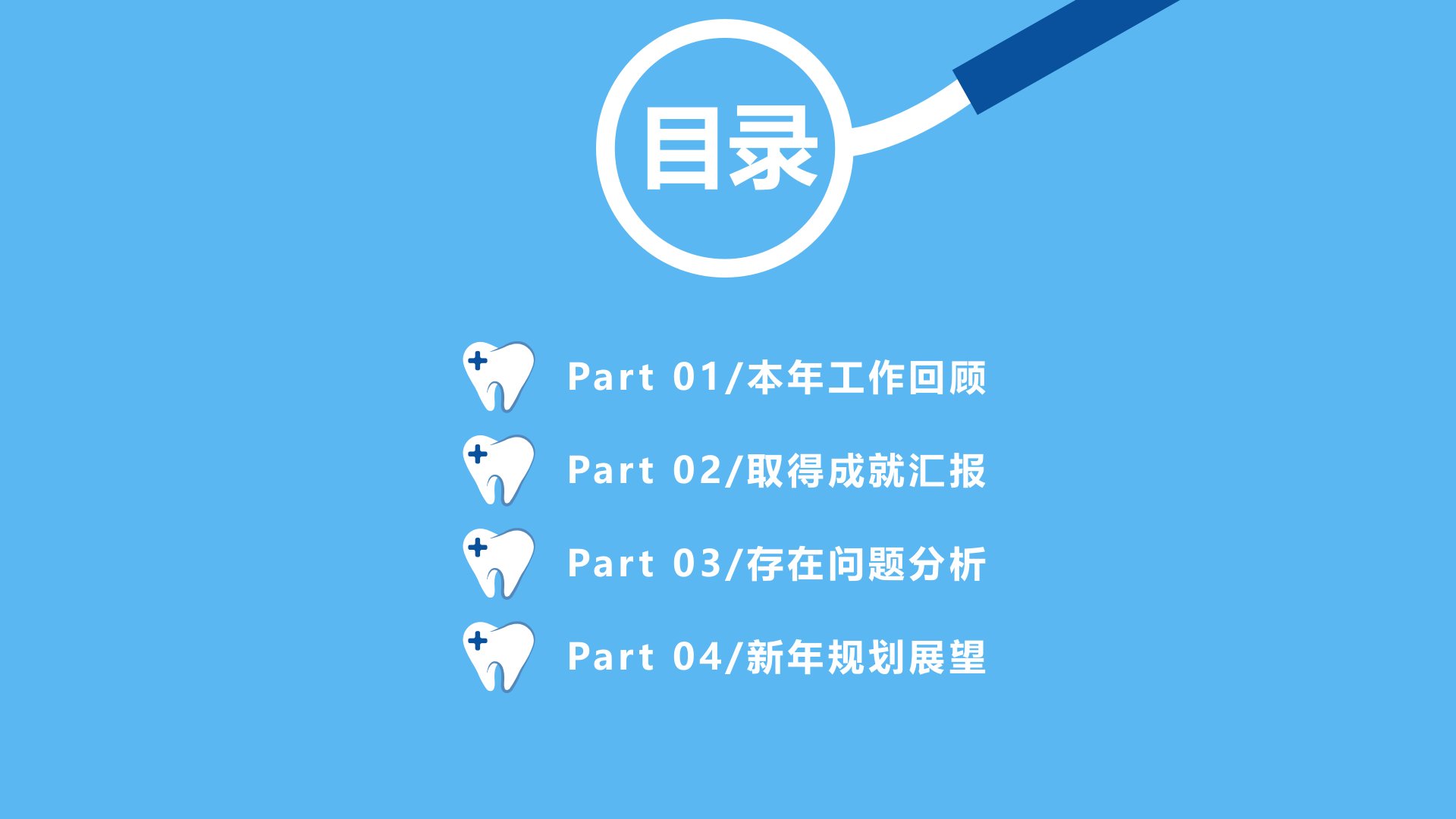 口腔专家年终总结计划THEPROFESSIONALPOWERPOINTTEMPLATE汇报人:在行目录Part01/本年工作回顾Part02/取得成就汇报Part03/存在问题分析Part04/新年规划展望Part01/本年工作回顾Part01/本年工作回顾单击编辑标题单击此处编辑您要的内容,建议您在展示时采用微软雅黑字体单击编辑标题单击此处编辑您要的内容,建议您在展示时采用微软雅黑字体单击编辑标题单击此处编辑您要的内容,建议您在展示时采用微软雅黑字体单击编辑标题单击此处编辑您要的内容,建议您在展示时采用微软雅黑字体Part01/本年工作回顾010203单击编辑标题单击此处编辑您要的内容,建议...