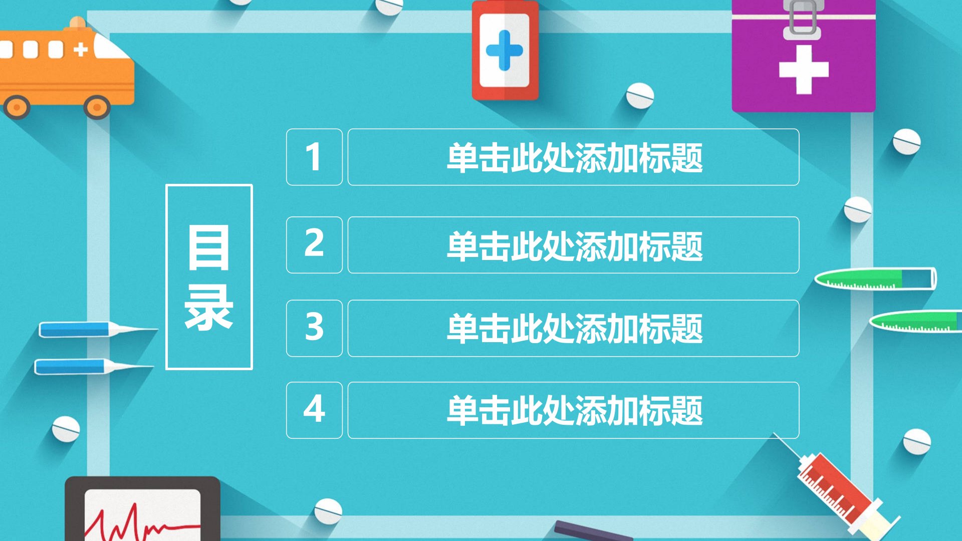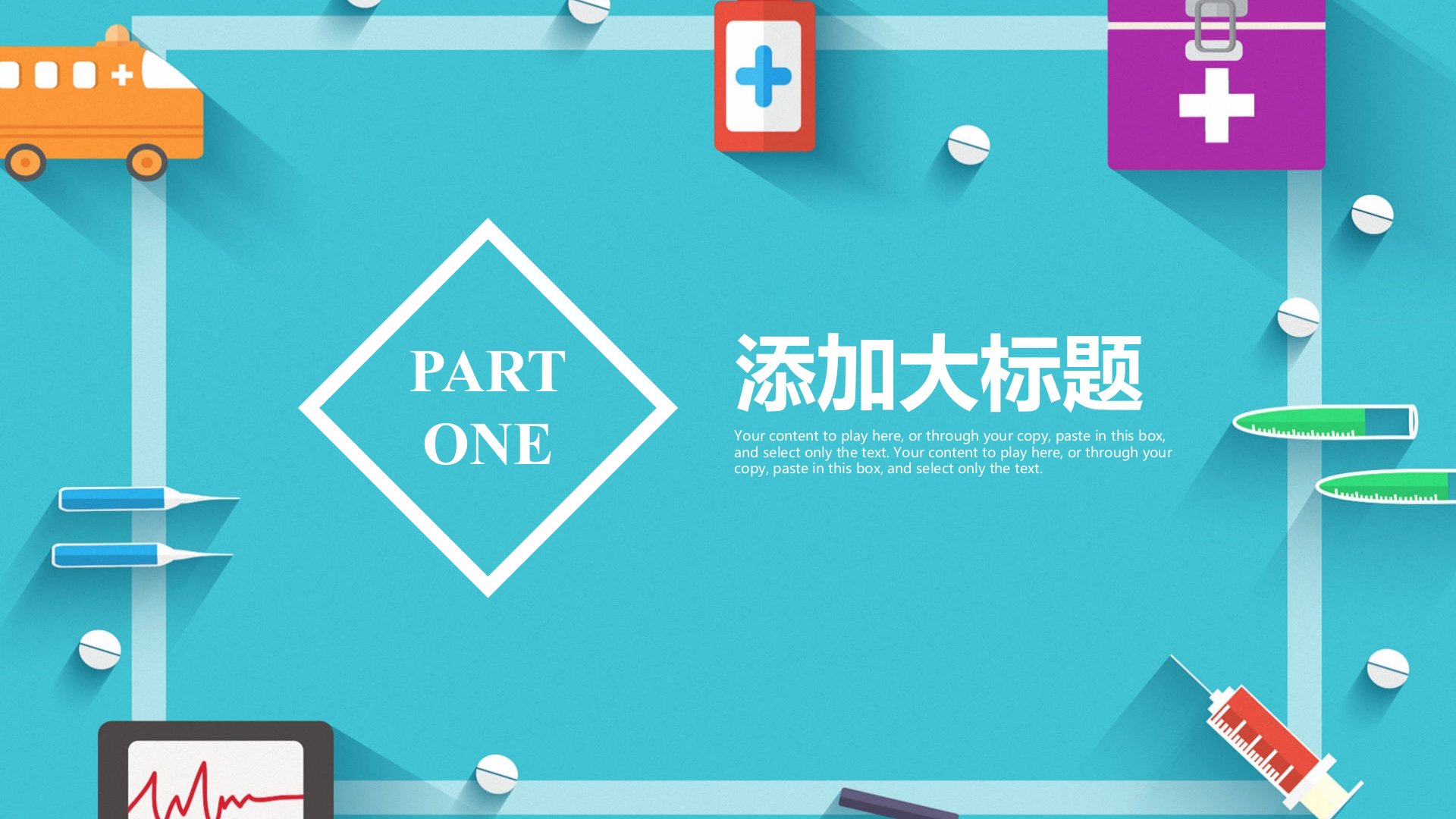 医学护理工作PPT模板动态PPT/框架完整/精美大气/可以编辑医院通用模板目录单击此处添加标题单击此处添加标题单击此处添加标题123单击此处添加标题4添加大标题Yourcontenttoplayhere,orthroughyourcopy,pasteinthisbox,andselectonlythetext.Yourcontenttoplayhere,orthroughyourcopy,pasteinthisbox,andselectonlythetext.PARTONE您的内容打在这里,或者通过复制您的文本后,在此框中选择粘贴,并选择只保留文字。在此录入上述图表的综合描述说明,您的内容打在...