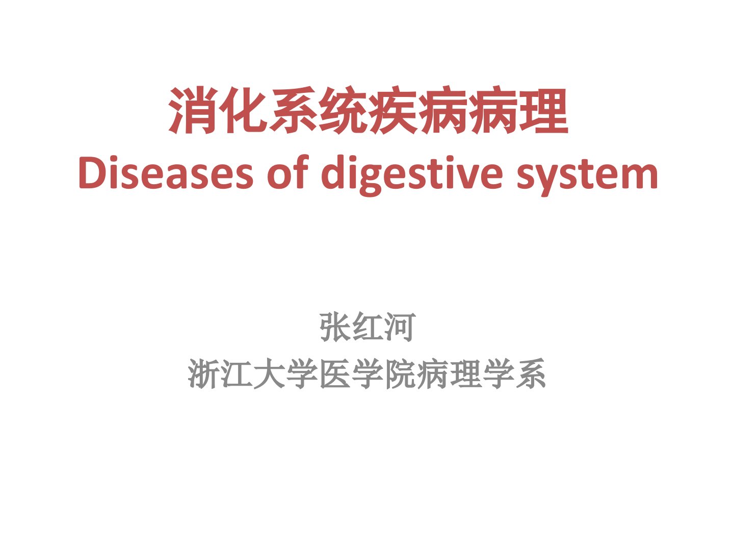 消化系统疾病病理Diseasesofdigestivesystem张红河浙江大学医学院病理学系消化系统的组成消化道:口腔、咽、食管、胃、小肠、大肠、肛门消化腺:唾液腺、胰腺、肝、消化管的粘膜腺体消化系统AnatomyofthestomachCorpus胃体Cadiac贲门Antrum胃窦Pylorus幽门Fundus胃底正常胃黏膜Histologyofthestomach胃炎概念:胃炎:胃粘膜常见的炎症性疾病。分急性和慢性两大类。一、慢性浅表性胃炎二、慢性萎缩性胃炎肉眼观:病变呈多灶性和弥漫性,粘膜充血、水肿、深红色,表面有灰白或灰黄色分泌物,有时伴有点状出血或糜烂。慢性浅表性胃炎镜下观:1....